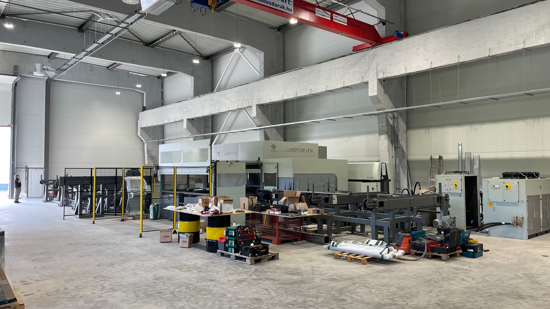 A gyártási komplexum teljesen felszerelt a nagyméretű acélszerkezetek gyártásához, kezeléséhez és tárolásához, valamint a logisztikához. Gyártóberendezéseink a hagyományos csarnokszerkezet-gyártási technológiáktól a legmodernebb profil- és lemezfeldolgozó berendezésekig terjednek.