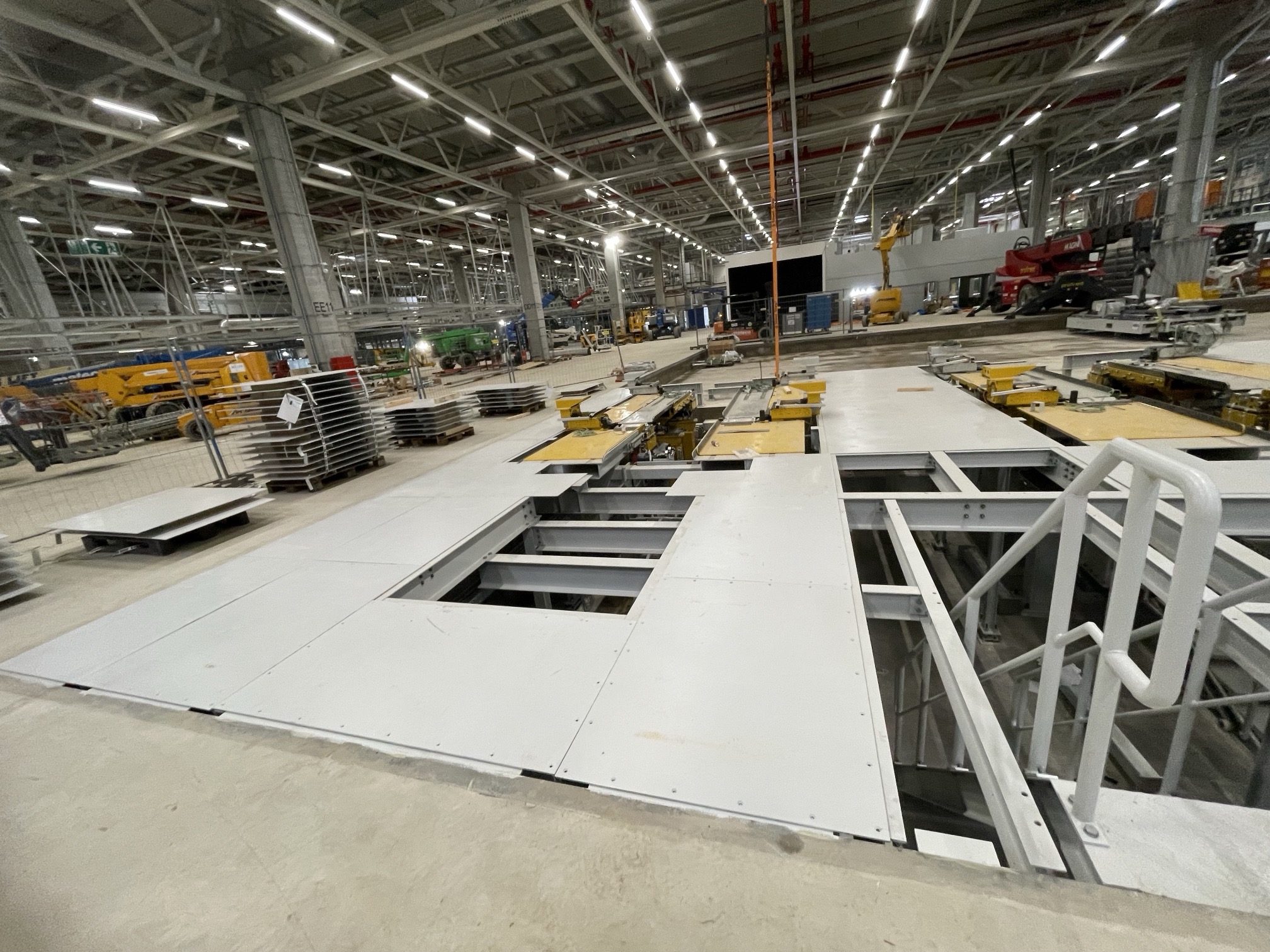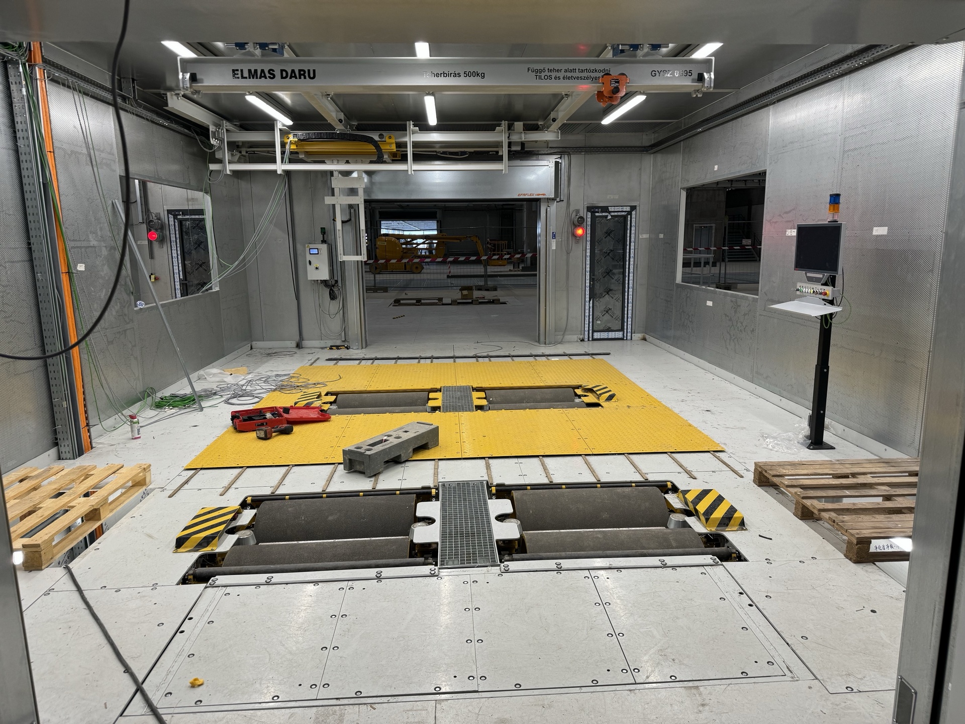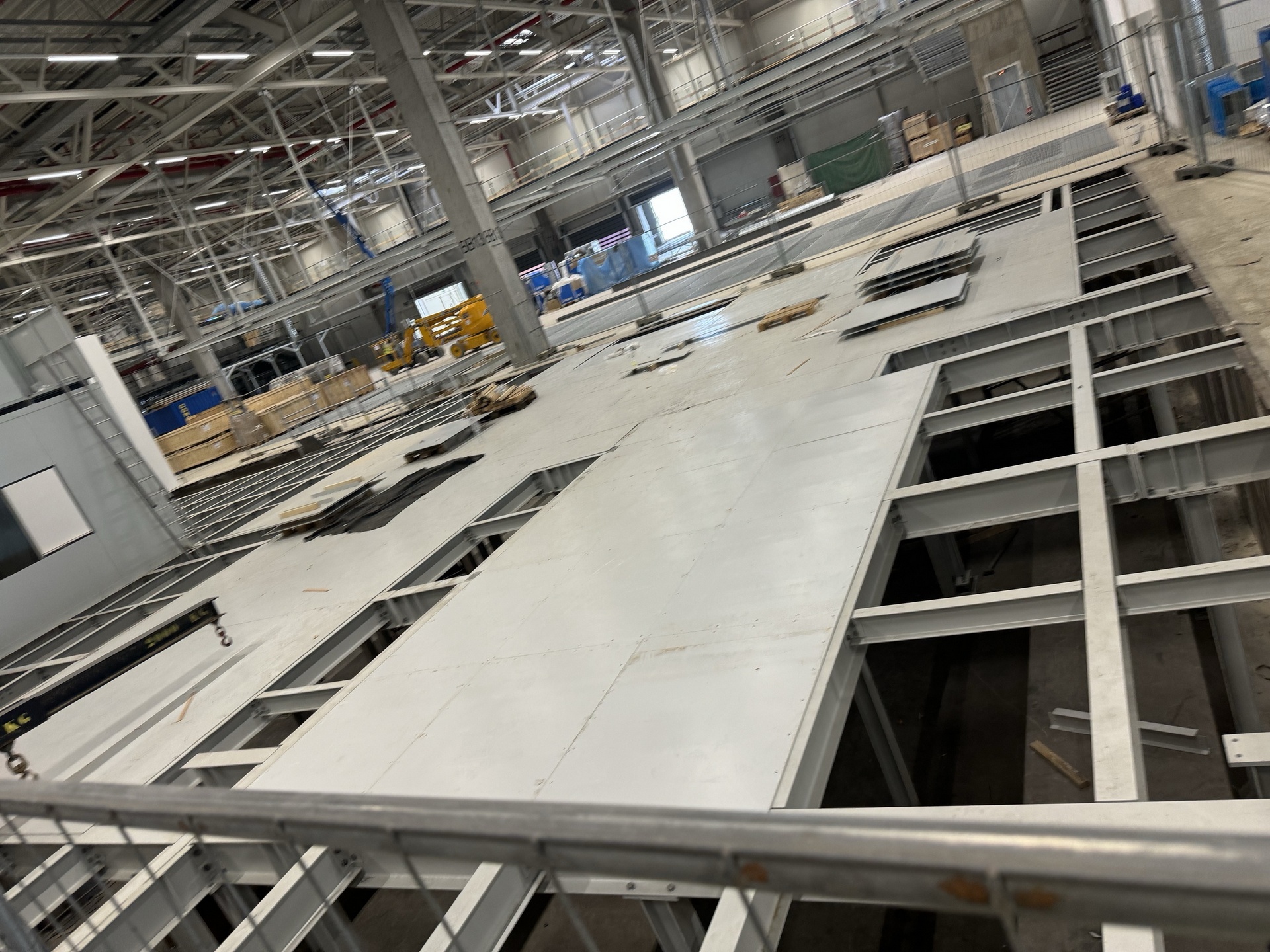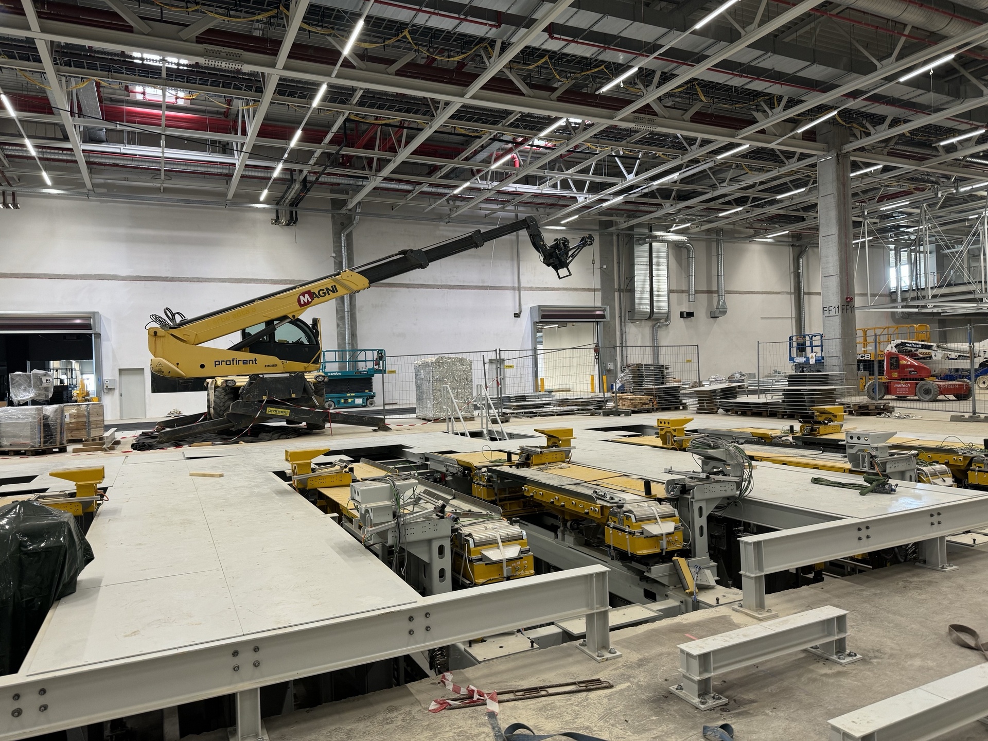 Hall and podium structure production and construction project in the north-western area of Debrecen, on a more than 400 hectare site, in the wheel centring hall part of the plant, with crane tracks.