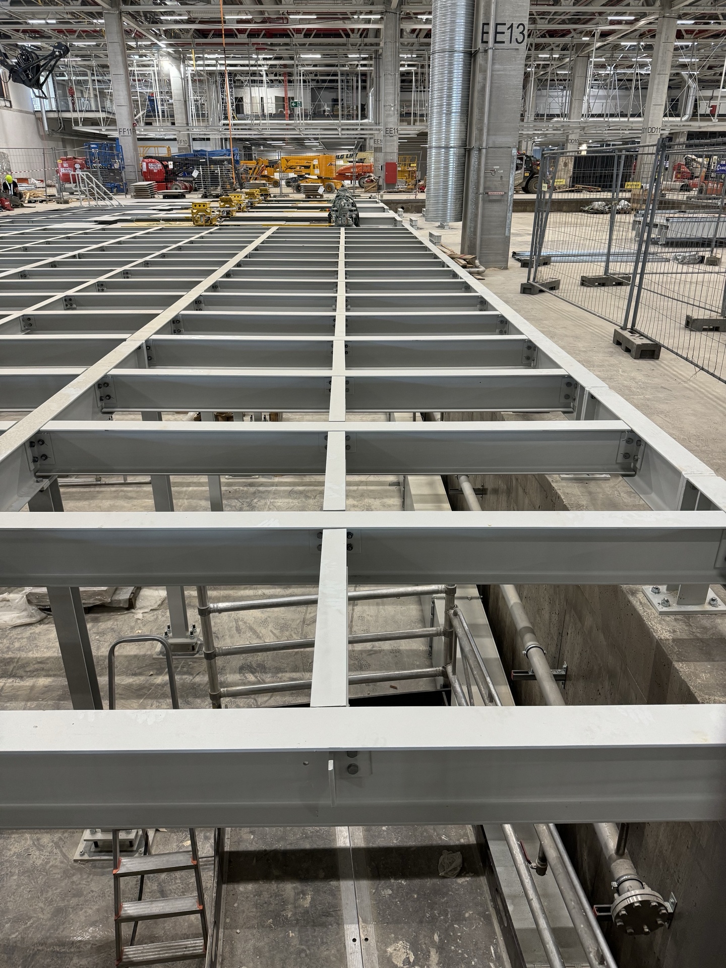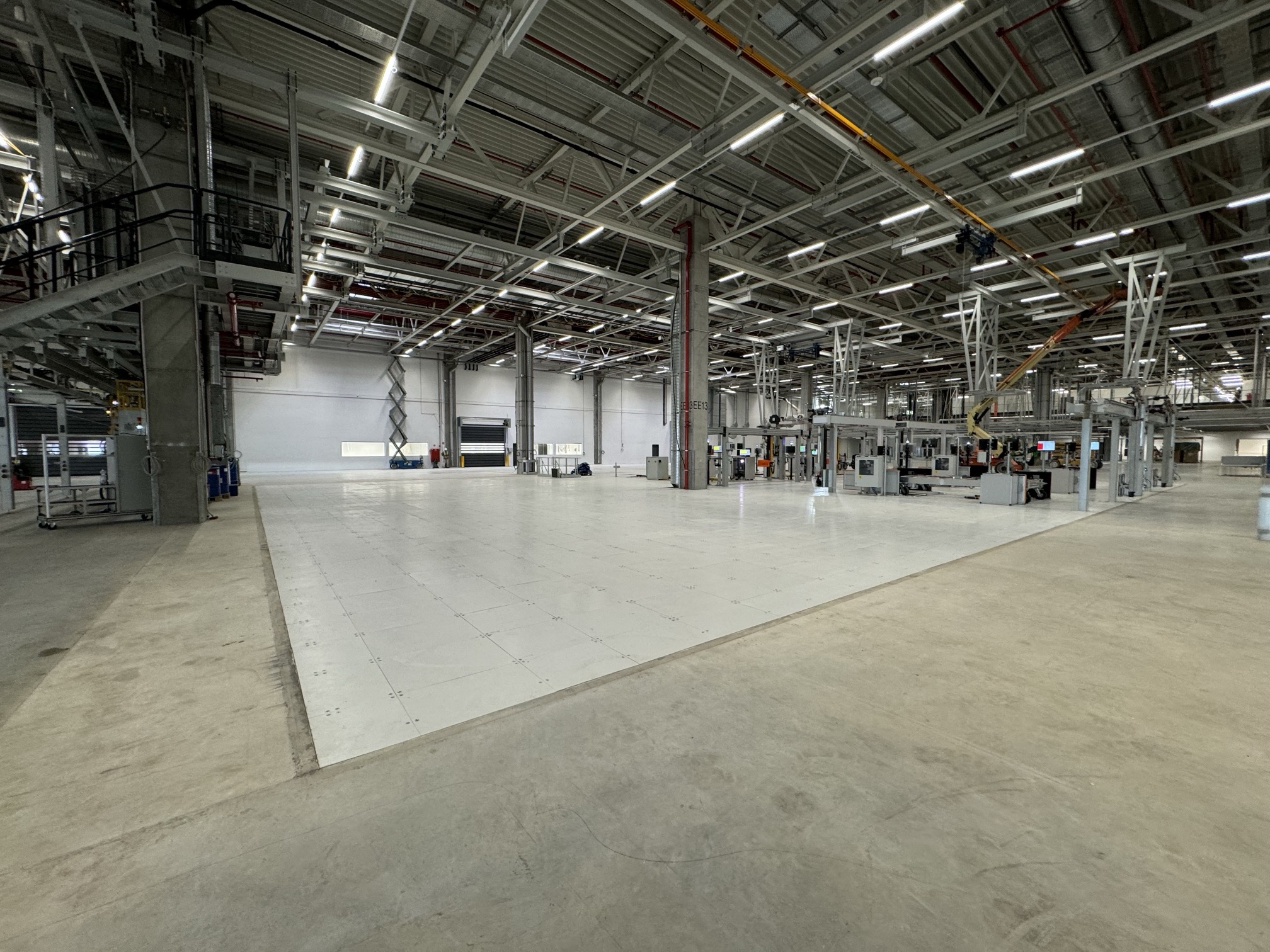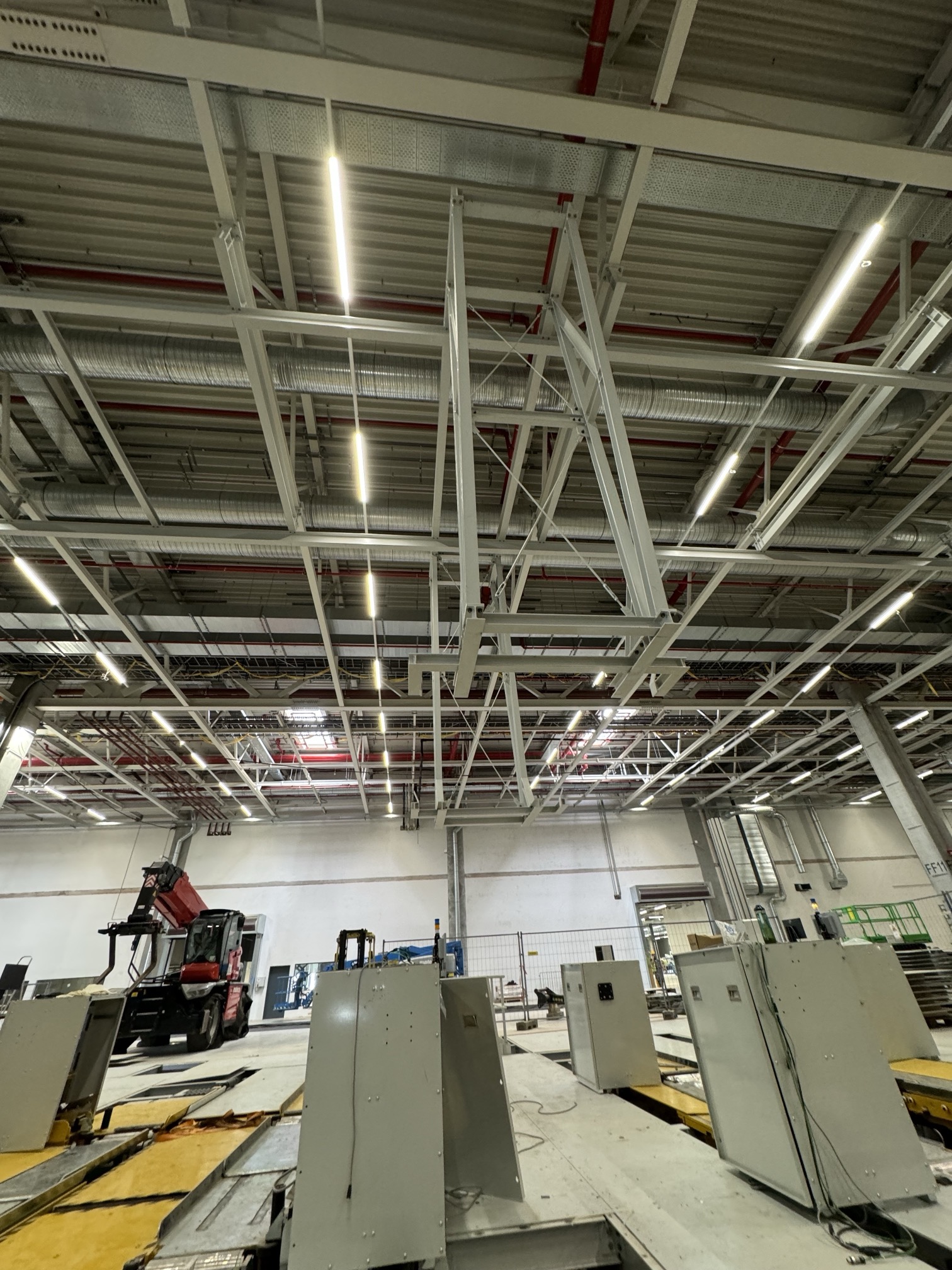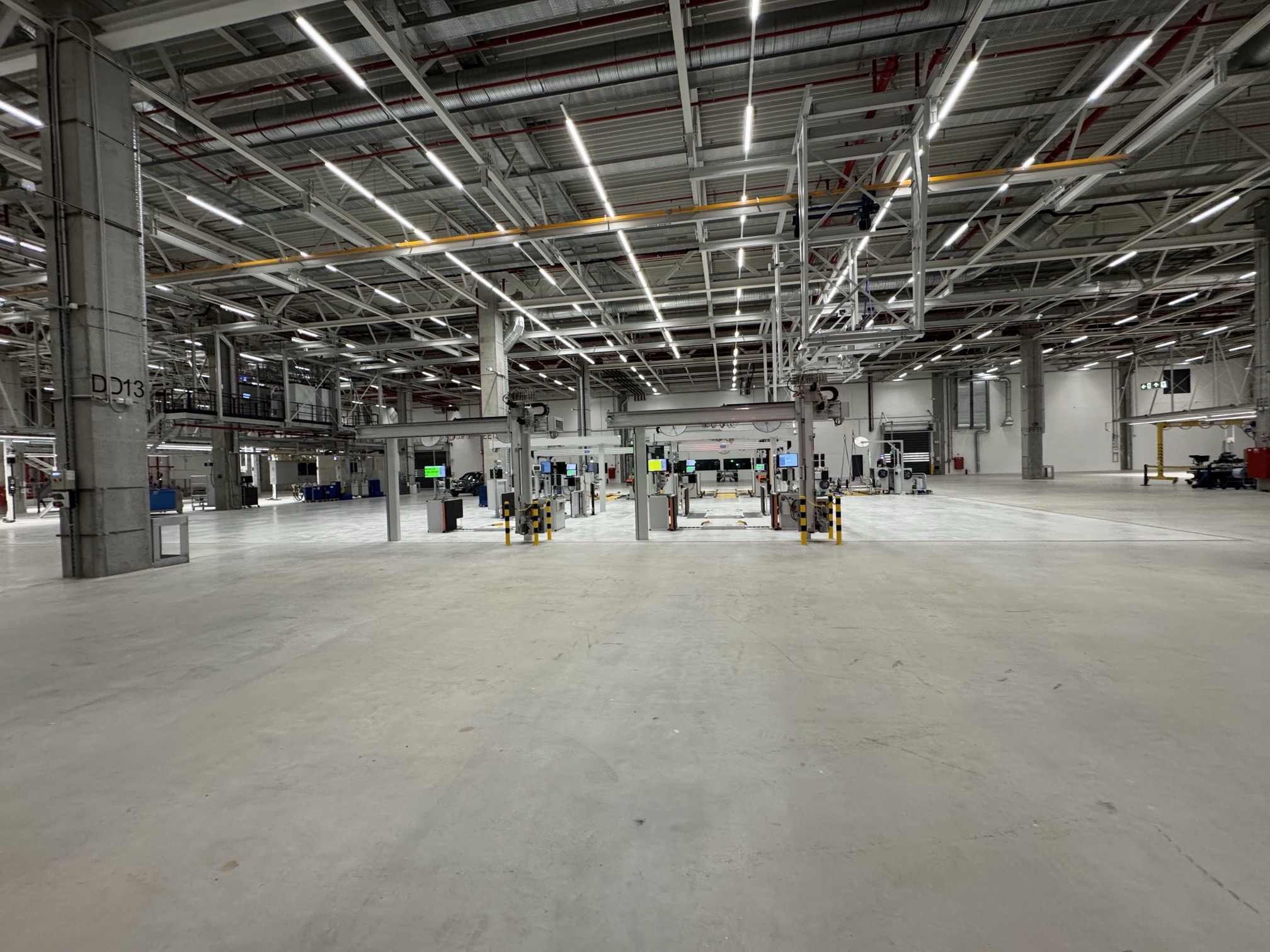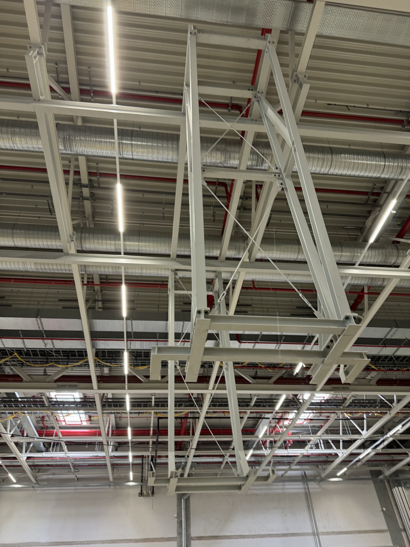 Hall and podium structure production and construction project in the north-western area of Debrecen, on a more than 400 hectare site, in the wheel centring hall part of the plant, with crane tracks.