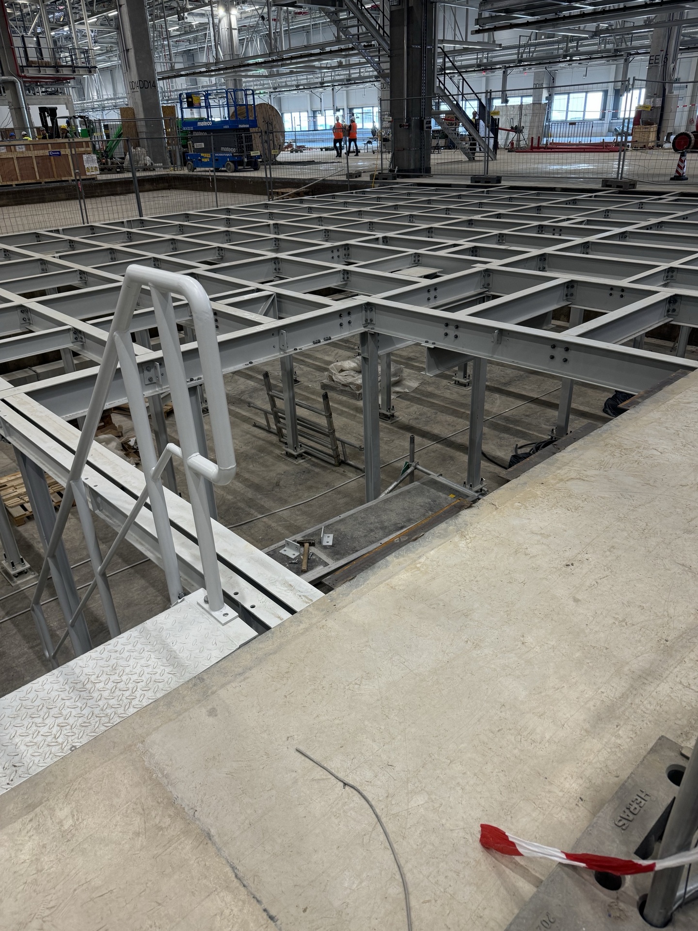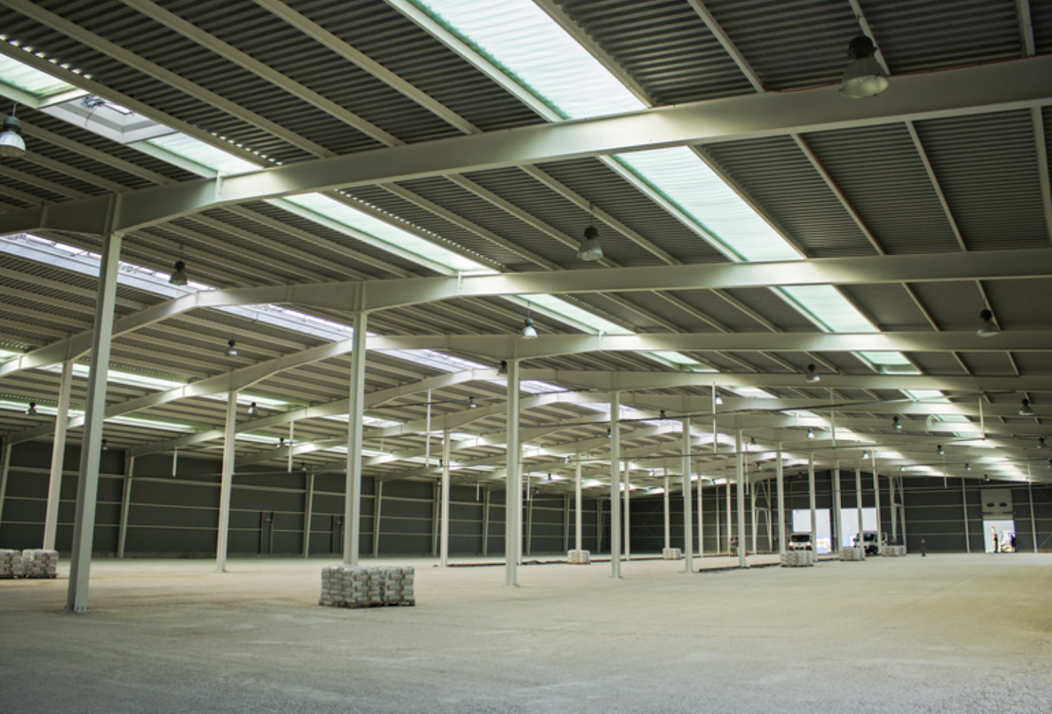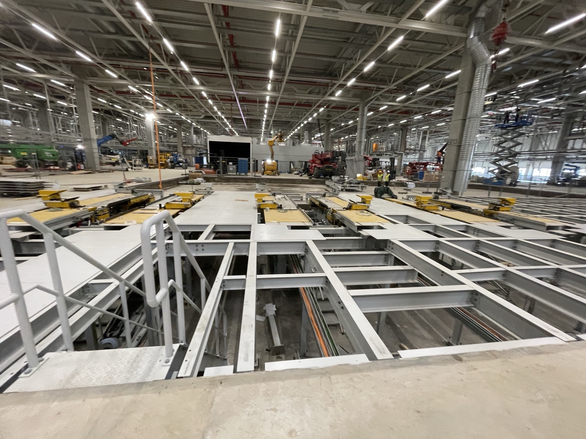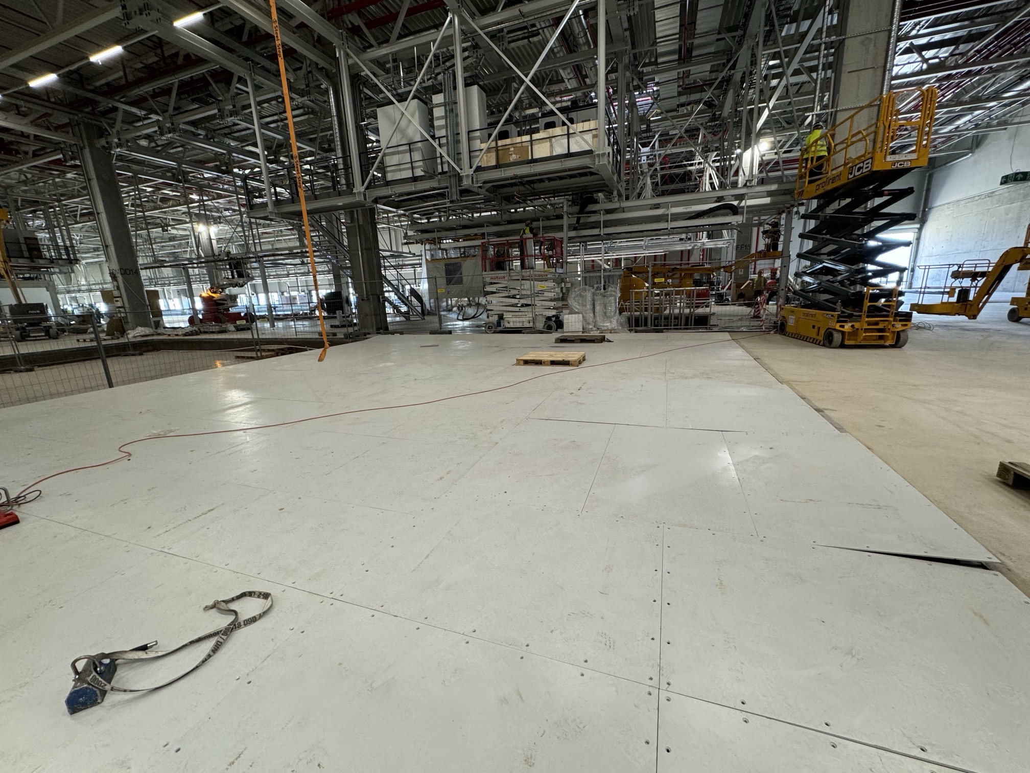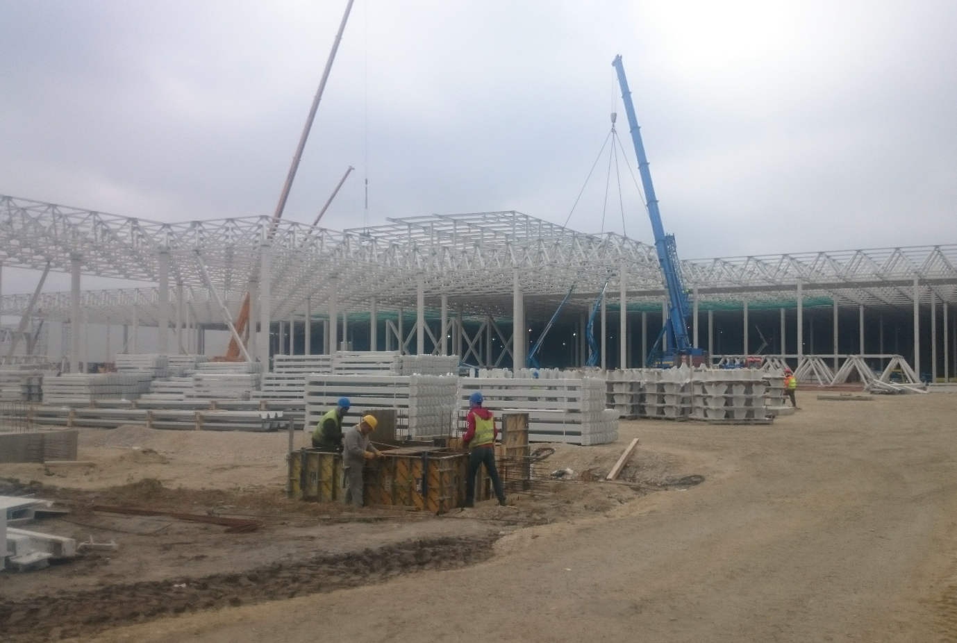 Hall and podium structure production and construction project in the north-western area of Debrecen, on a more than 400 hectare site, in the wheel centring hall part of the plant, with crane tracks.