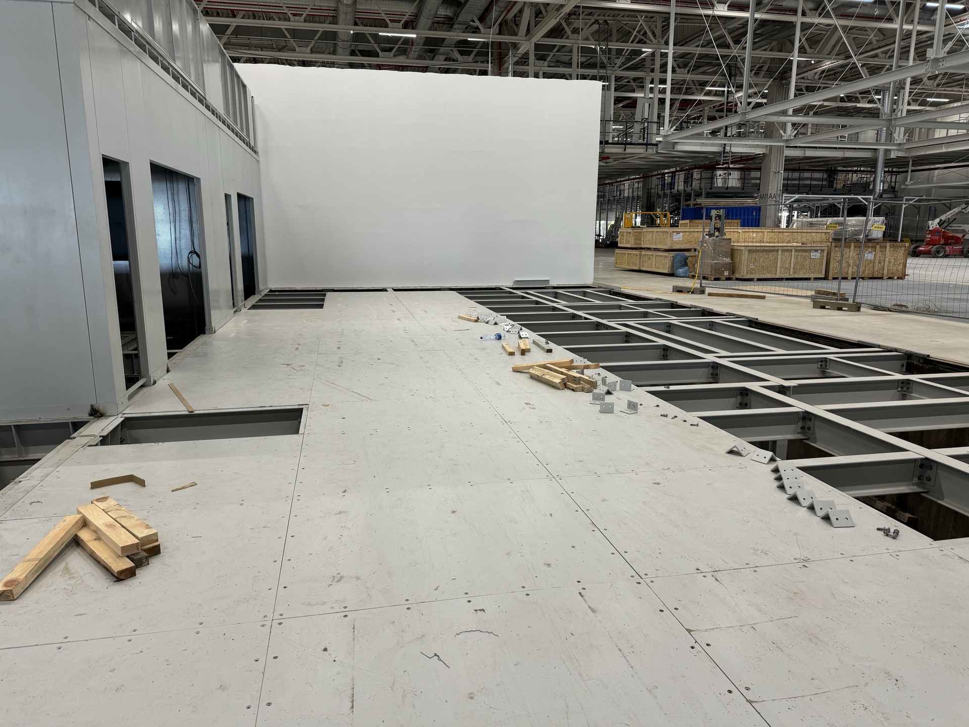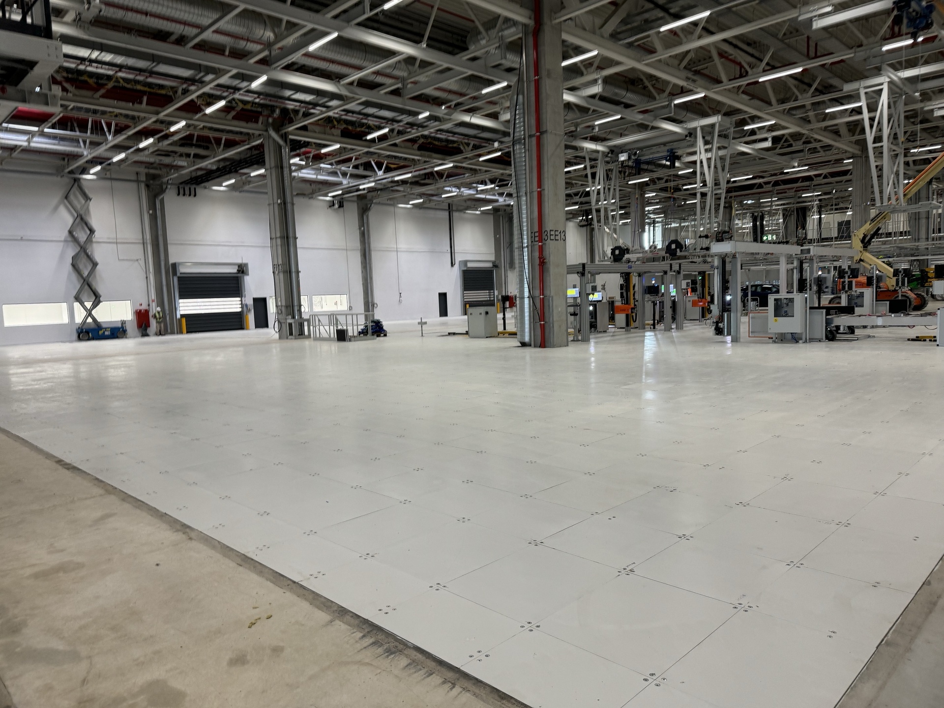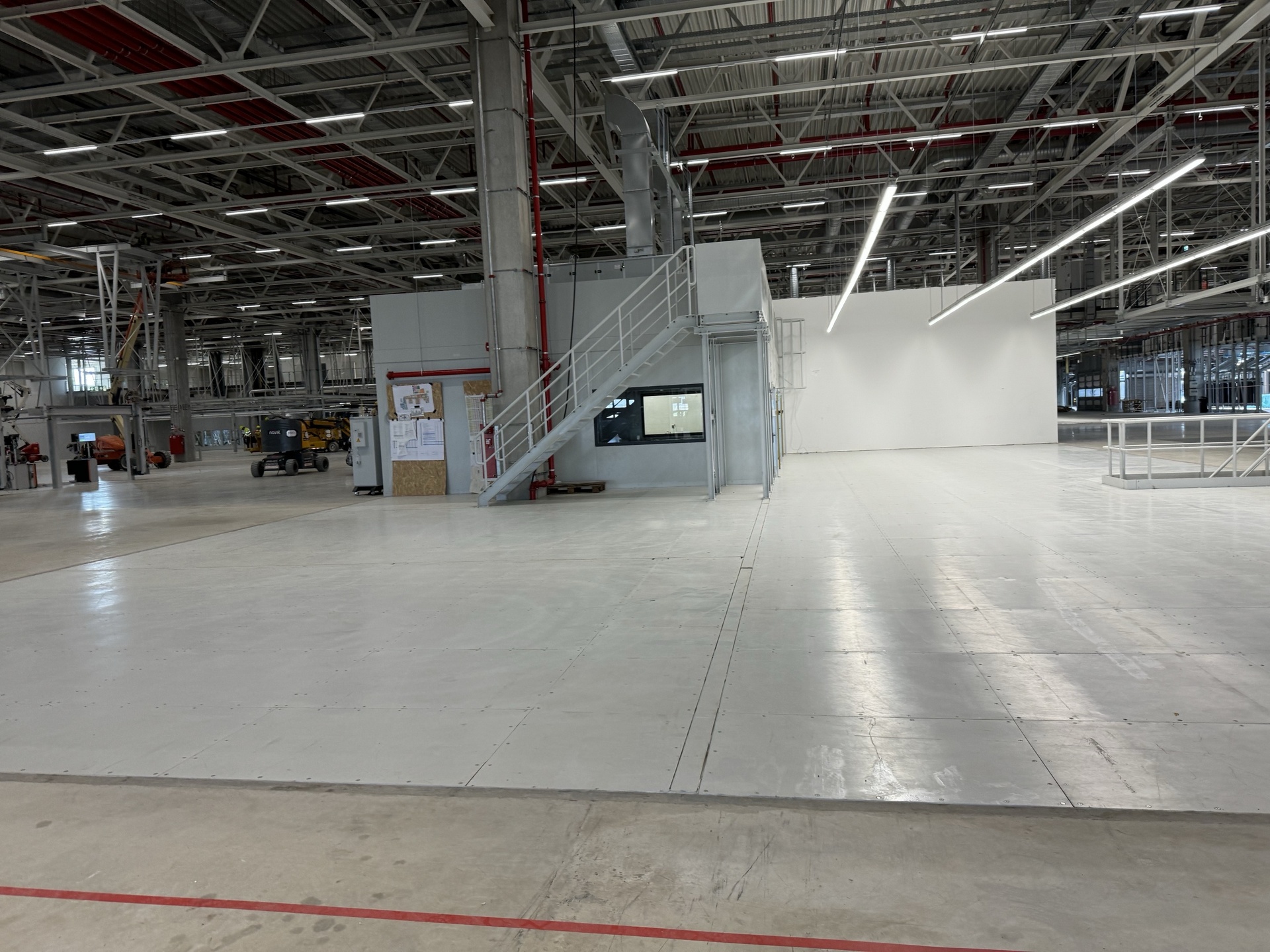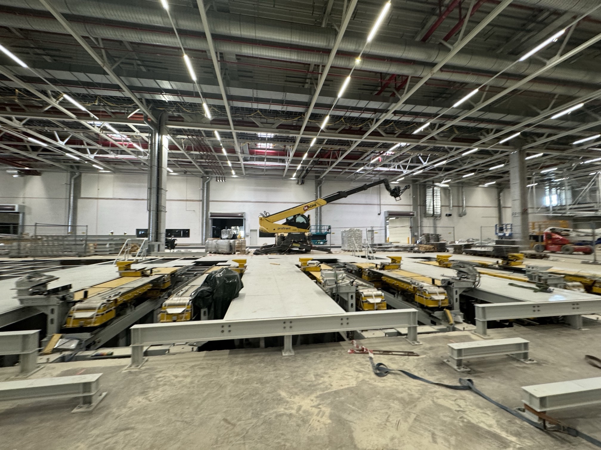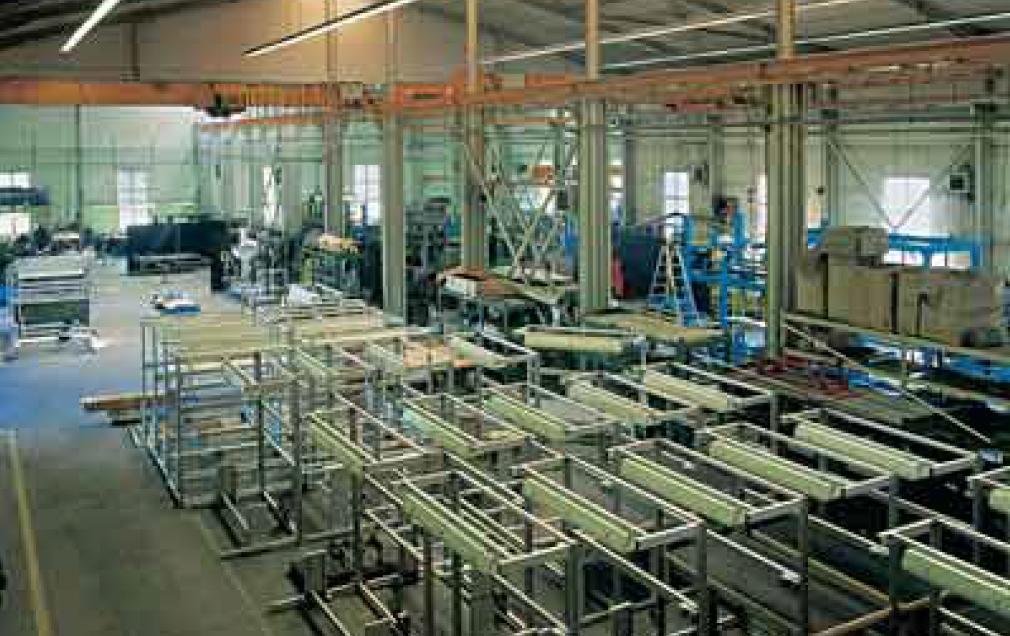 Hall and podium structure production and construction project in the north-western area of Debrecen, on a more than 400 hectare site, in the wheel centring hall part of the plant, with crane tracks.
