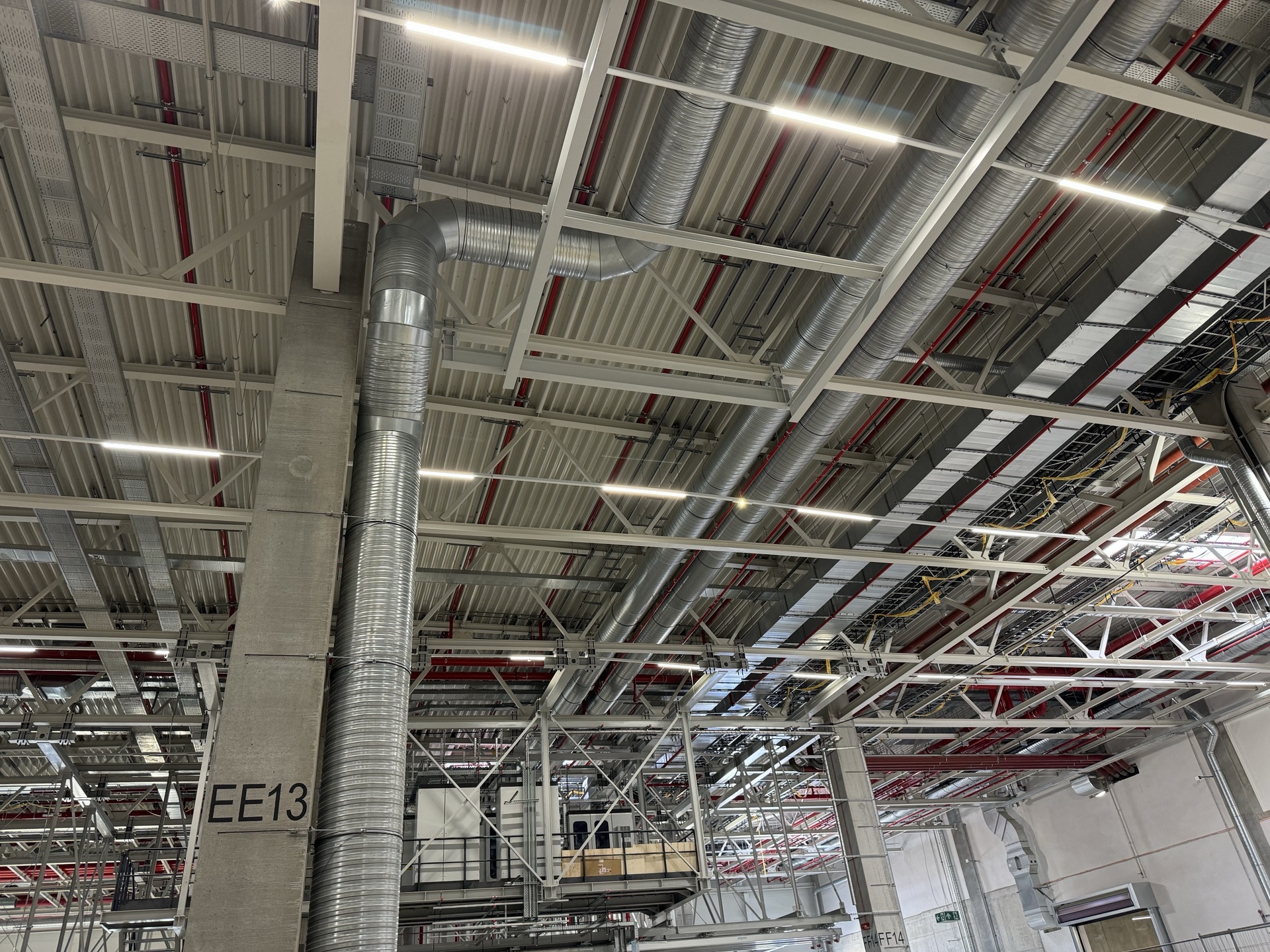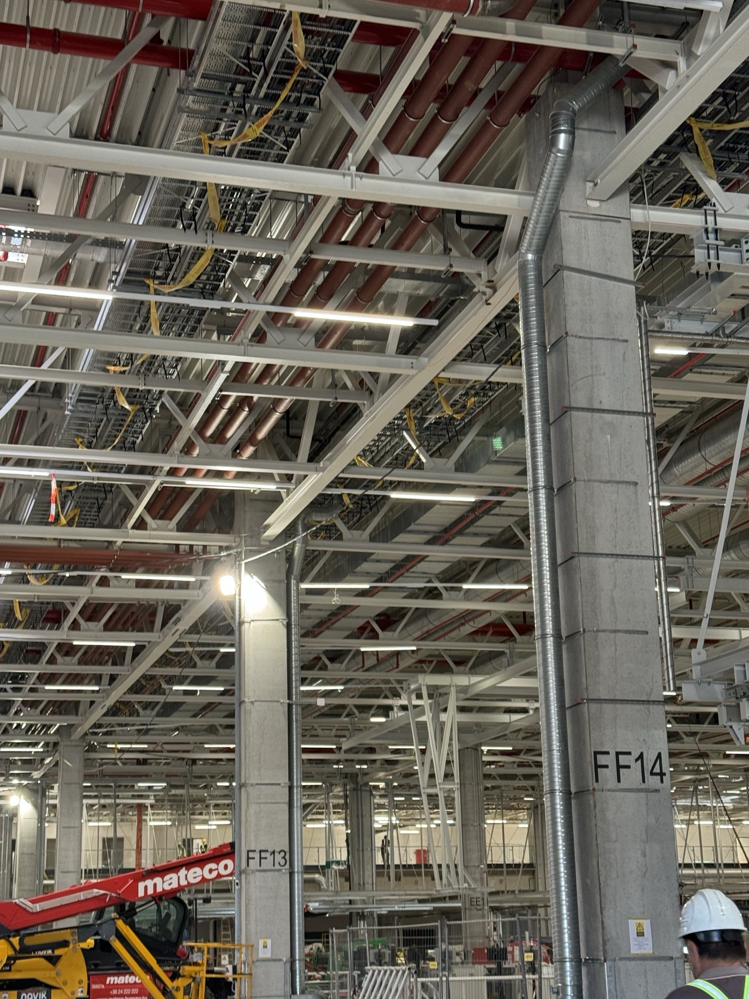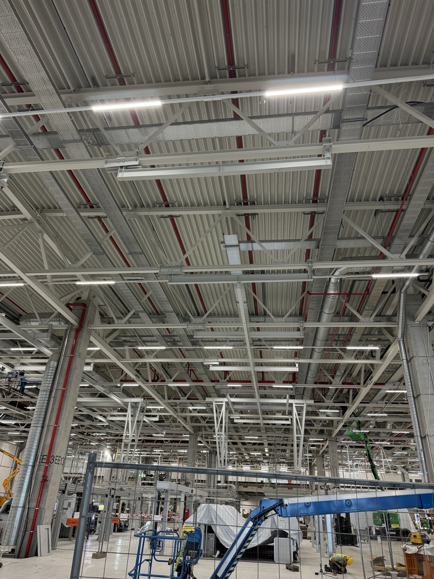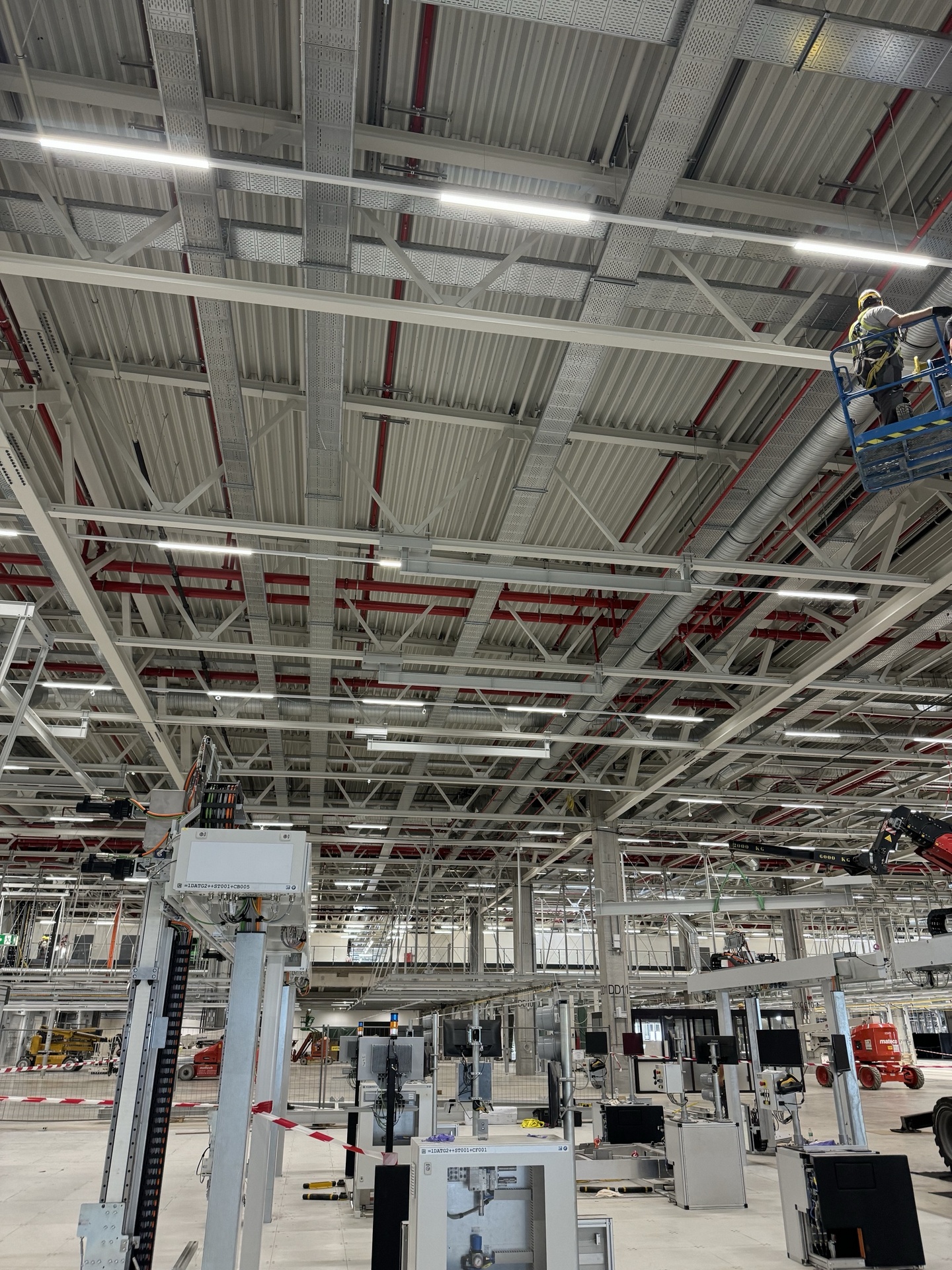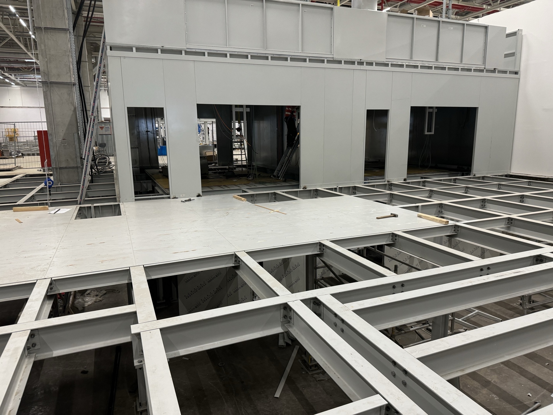 Hall and podium structure production and construction project in the north-western area of Debrecen, on a more than 400 hectare site, in the wheel centring hall part of the plant, with crane tracks.