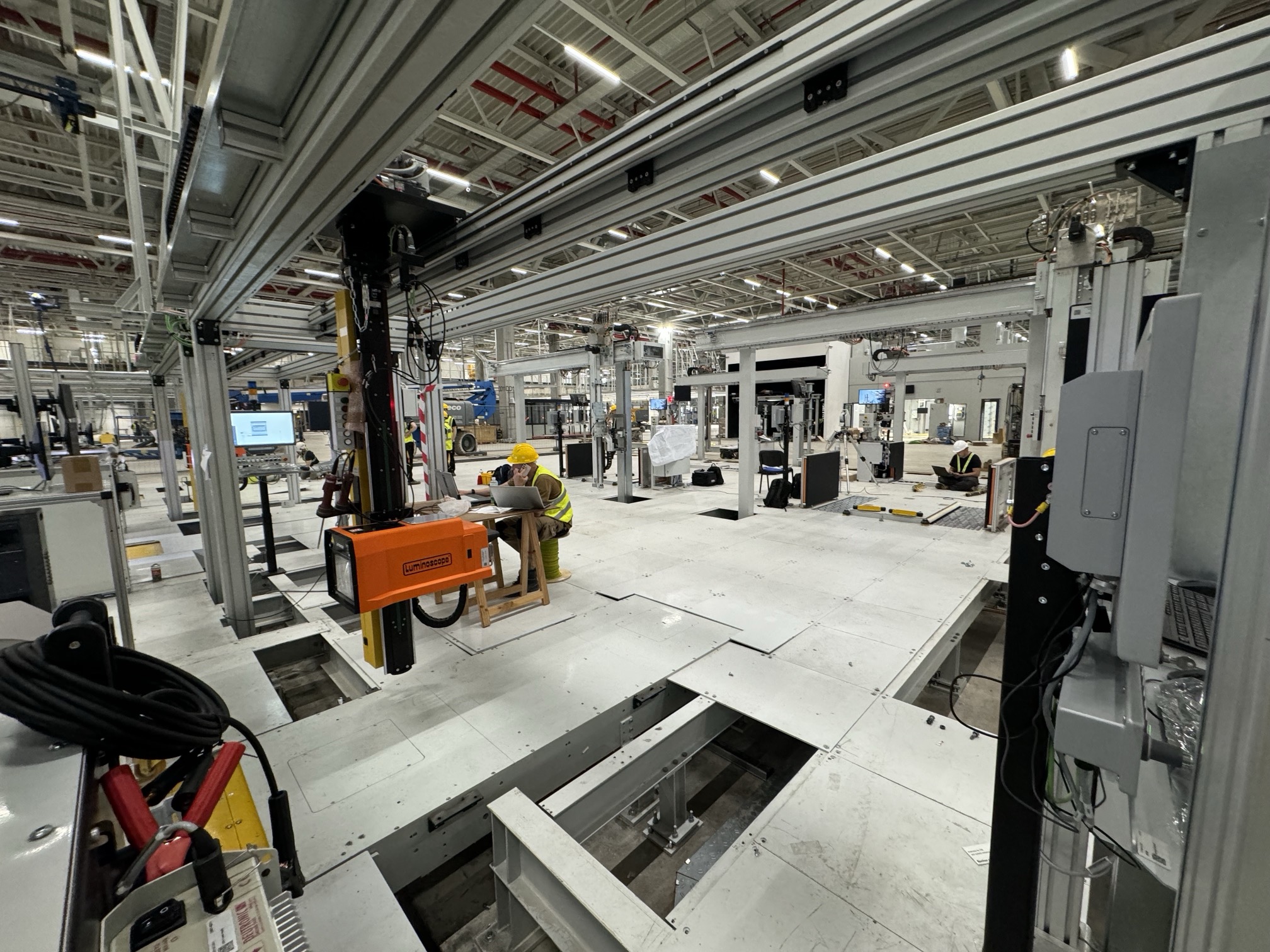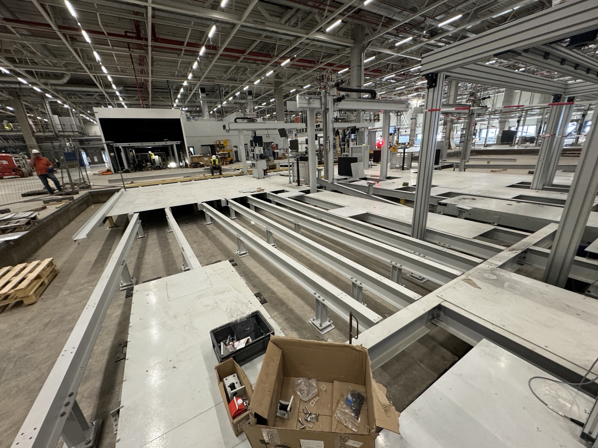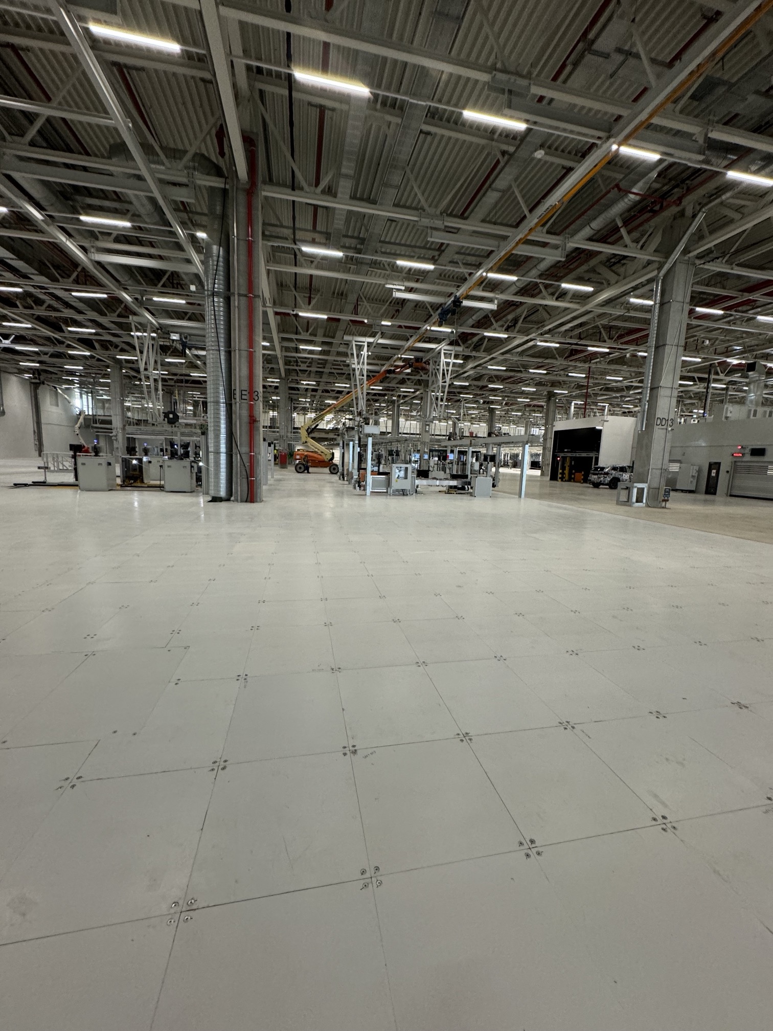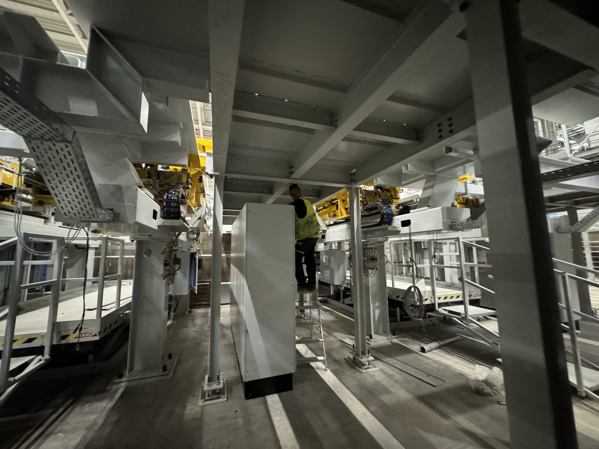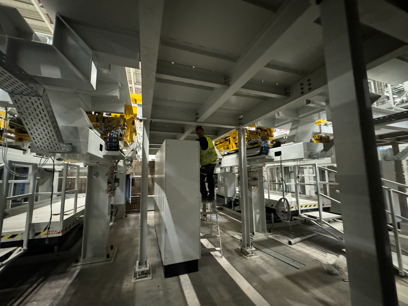 Hall and podium structure production and construction project in the north-western area of Debrecen, on a more than 400 hectare site, in the wheel centring hall part of the plant, with crane tracks.